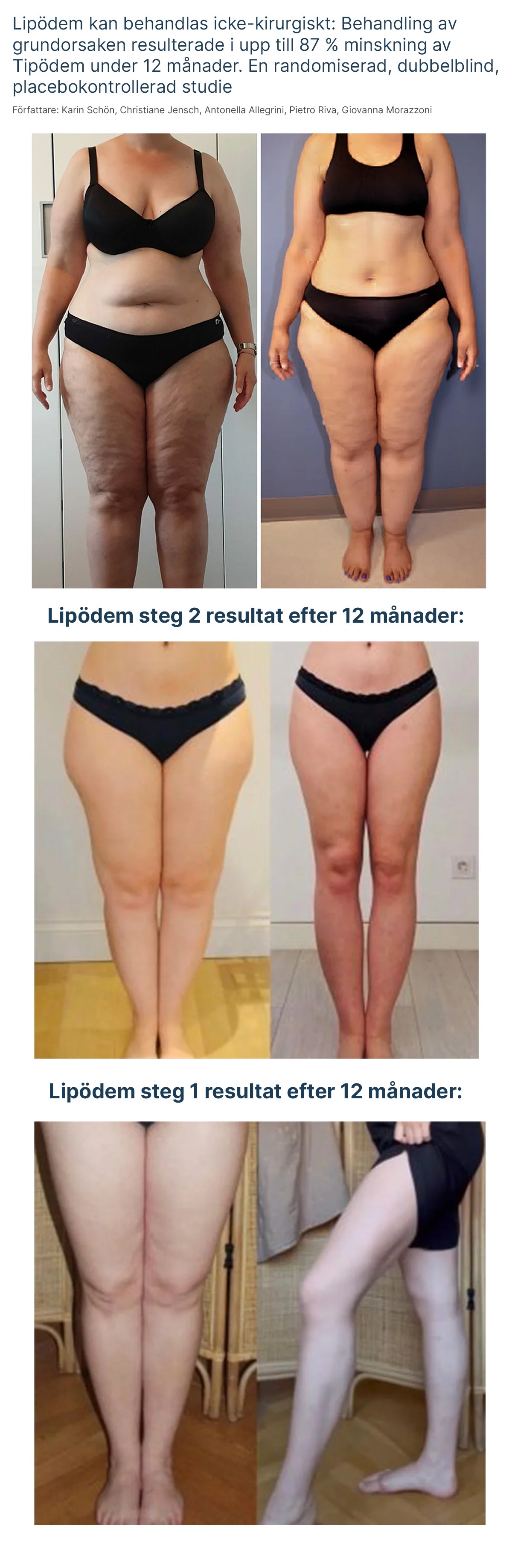 Lär dig hur tusentals kvinnor redan har bekämpat sitt lipödem hemifrån med en helt naturlig lösning. Upptäck hur även du kan få smala ben, smärtfri rörlighet och tillräckligt med energi för vardagen på bara några veckor. (Det hjälper även vid lymfödem!)