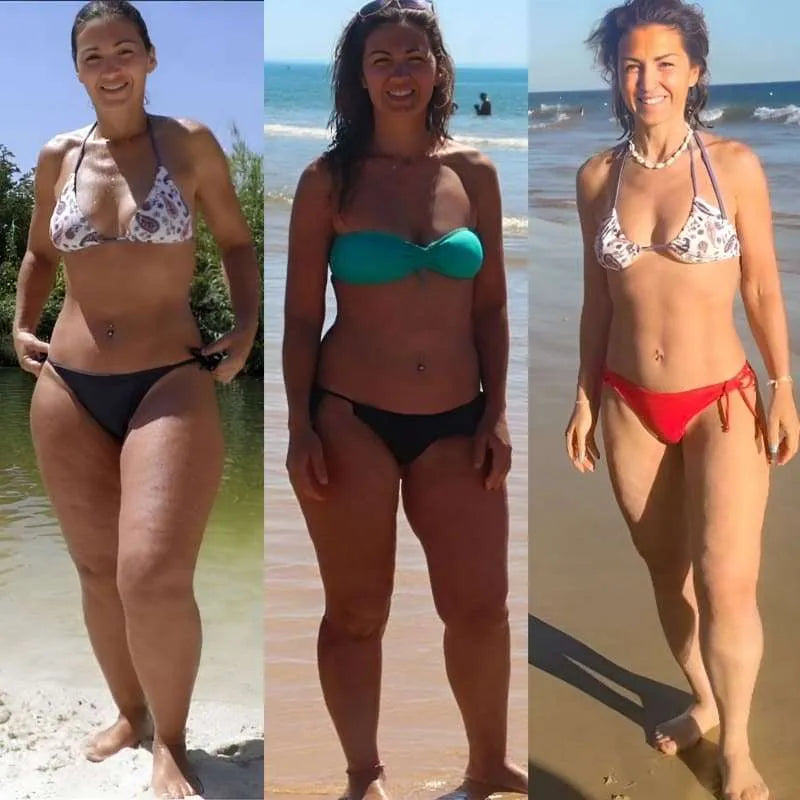 Lena D. känner sig verkligen bekväm i sin kropp igen, även på stranden.